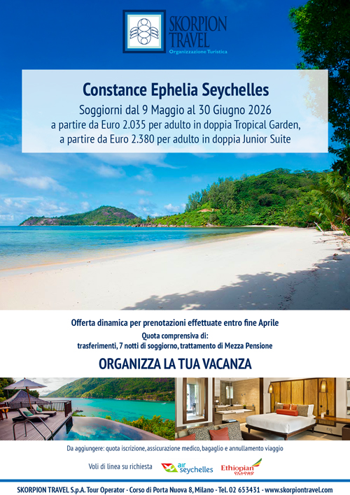 Le variegate bellezze e le molteplici diversità delle Seychelles si sono incontrate e materializzate in un unico luogo, il Constance Ephelia. La bellezza e la diversità della natura, con due delle più belle spiagge di Mahé, la trasparenza turchese delle acque e il verde brillante di una vegetazione unica, si fondono con la bellezza e la diversità creata dall’uomo, fatta di una grande varietà di suite e ville da sogno e di una Spa che “richiama il mitico e favoloso giardino dell’Eden”.