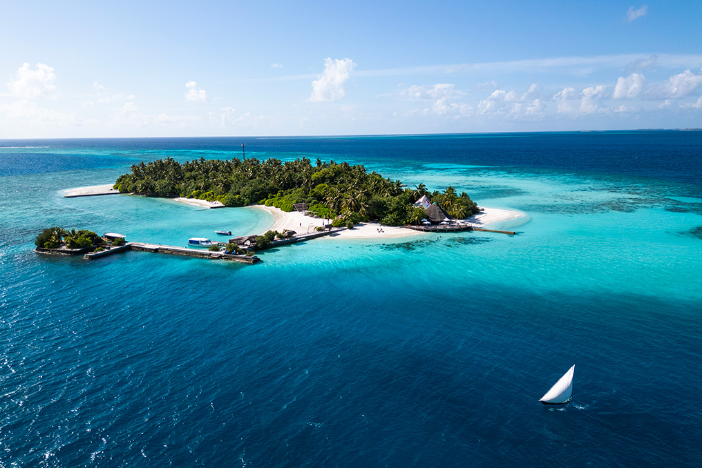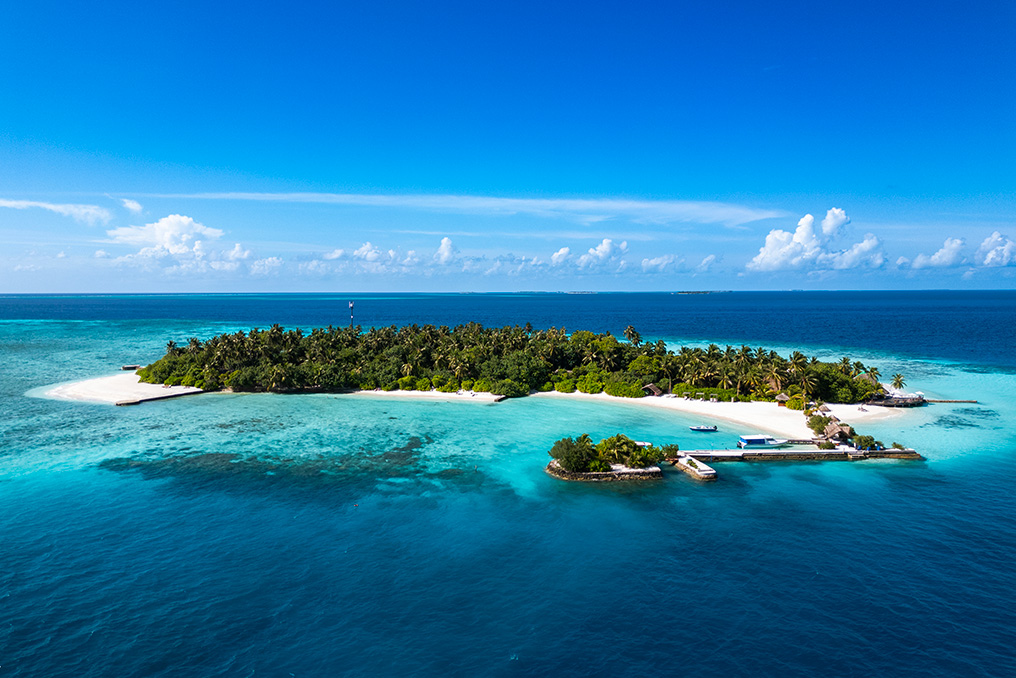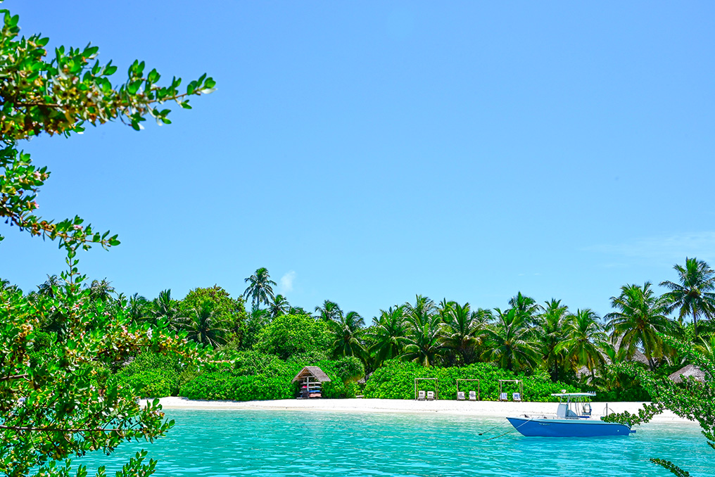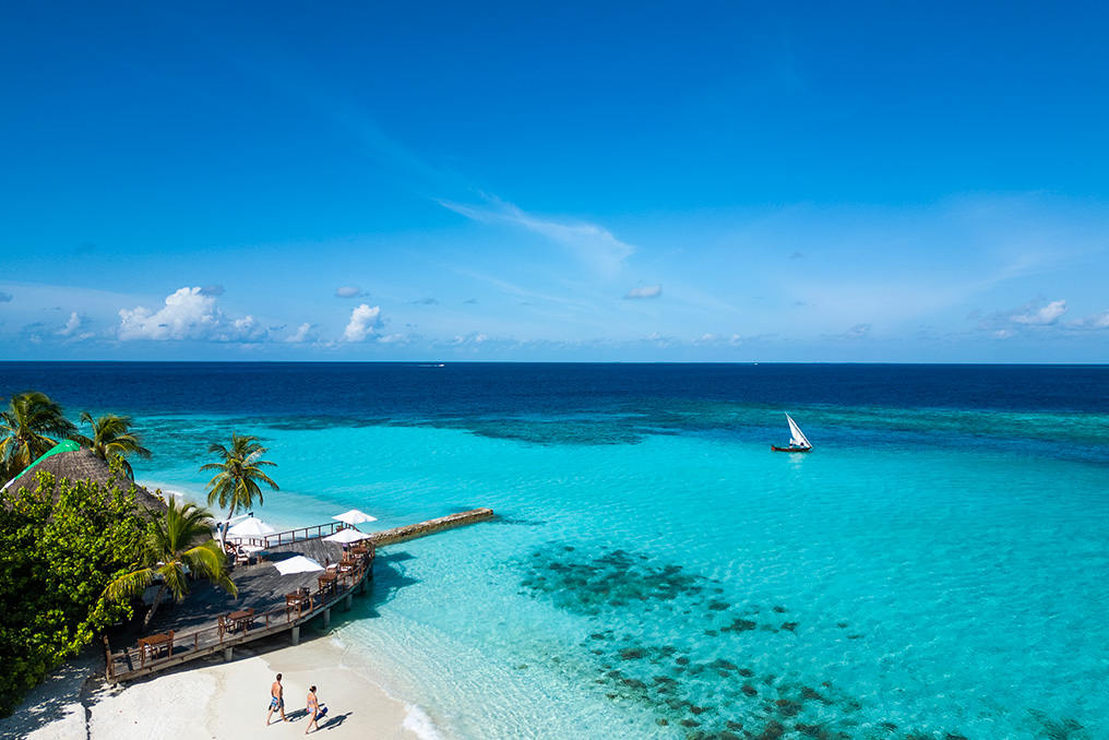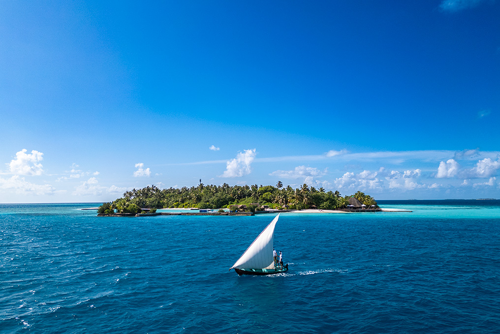 In maldiviano si chiama Makunudhoo, è un’isola piccola, dalla forma tondeggiante, coperta da una folta vegetazione e circondata da bianche spiagge dove passeggiano indisturbati imponenti aironi cenerini e da una bella barriera corallina. 6 acri di totale intimità, con pochi bungalow per pochi ospiti, un’atmosfera tranquilla, raffinata e accogliente, un luogo dove ritrovare il piacere di un silenzio rotto solo dal rumore delle onde e del frusciare delle foglie delle palme mosse da una leggera brezza.
