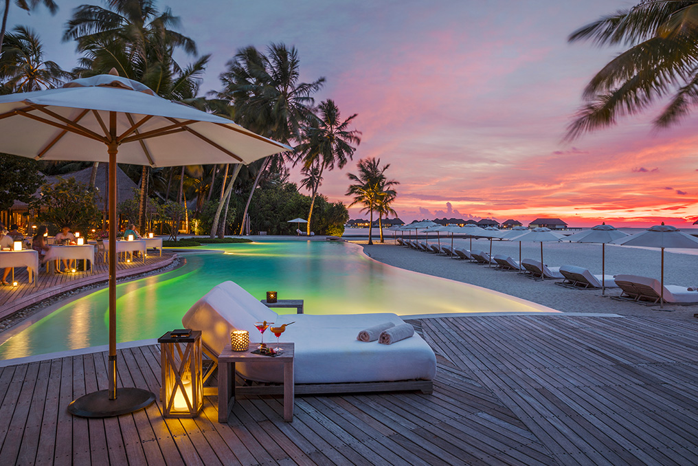 Su un lembo di soffice spiaggia bianca, a soli 50 minuti di idrovolante da Malè, natura e lusso si fondono creando un resort con uno stile di vita chic ma “a piedi nudi”.