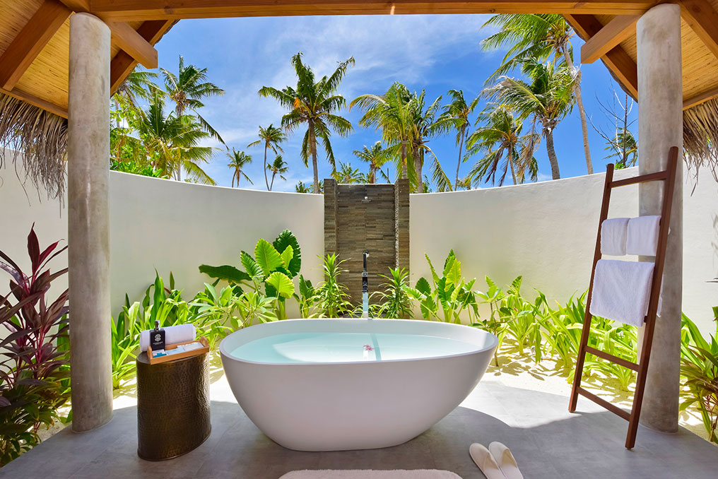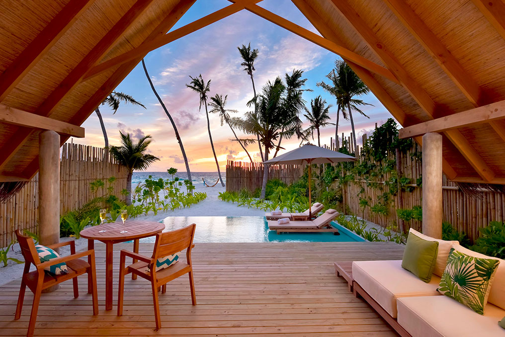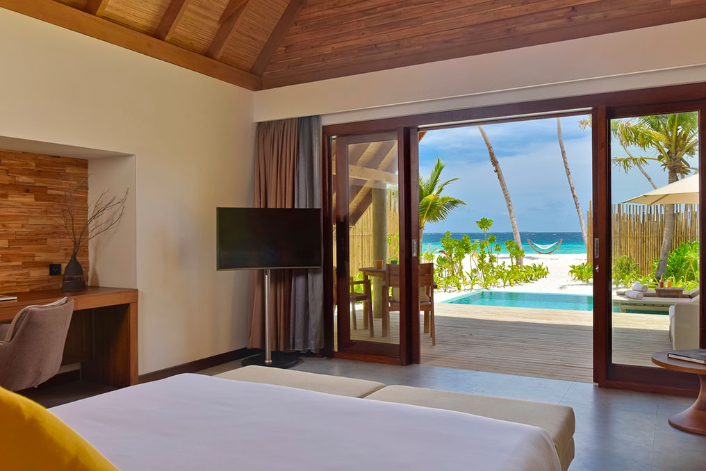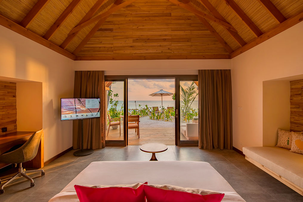 18 Beach Villas situate direttamente sulla spiaggia, che offrono viste mozzafiato sull'oceano e un accesso diretto alla sabbia soffice. Gli interni moderni e ariosi, con tocchi di design tropicale, sono dotati di un'amplia camera da letto, un bagno semi-aperto e terrazza privata. Ideali per chi ama stare a contatto con la natura, sia lato alba che lato tramonto. 20 Beach Pool Villas, versioni più esclusive delle Beach Villas, dotate di una piscina privata all'aperto, perfetta per momenti di relax totale. Offrono ampi spazi, comfort moderni e un'area esterna lussuosa che si fonde con il paesaggio naturale circostante. Per le famiglie, possibilità di 2 Duplex Beach Villas e 1 Premium Duplex Beach Villa, composte da una Beach Villa e una Pool Villa comunicanti. Il resort dispone anche di 19 Water Villas, suddivise nelle categorie Jacuzzi, Pool e Premium Pool, tutte costruite direttamente sulle acque turchesi della laguna, offrendo un'esperienza unica e raffinata. Queste ville sono dotate di una terrazza privata con lettini prendisole e una scaletta per l'accesso diretto alla laguna, perfette per nuotare o fare snorkeling in totale privacy. Gli interni sono eleganti e spaziosi, con ampie finestre che offrono viste panoramiche sull'oceano.
