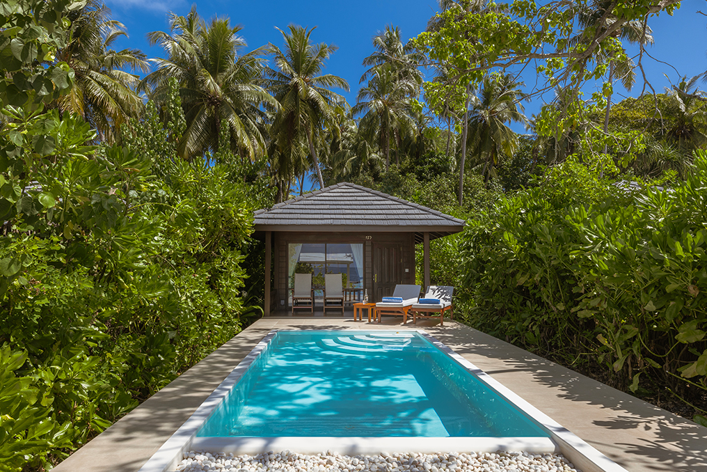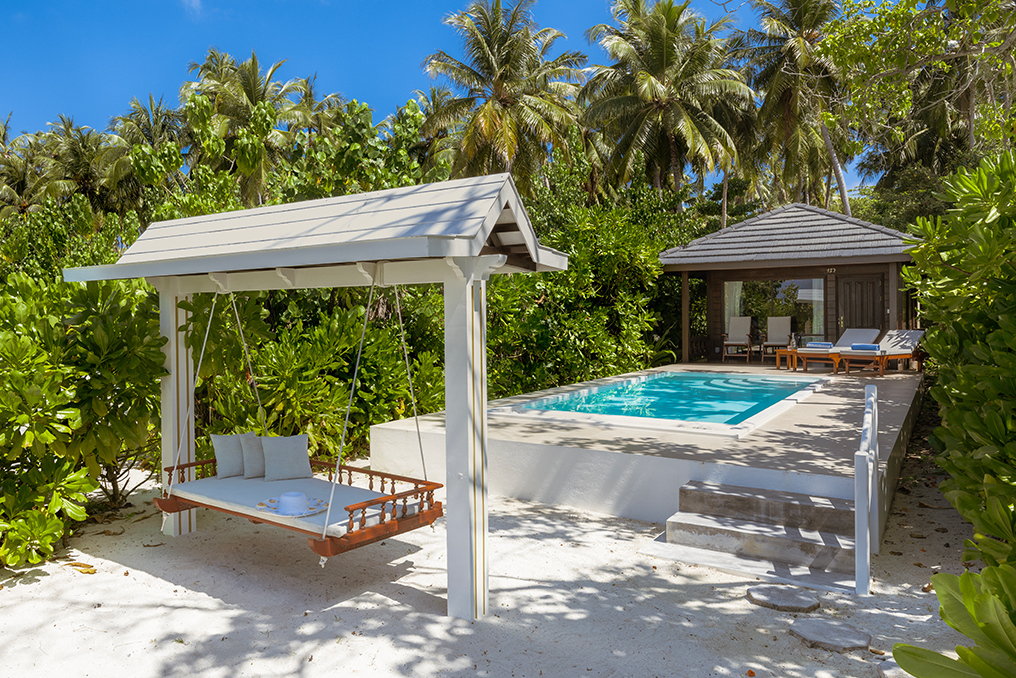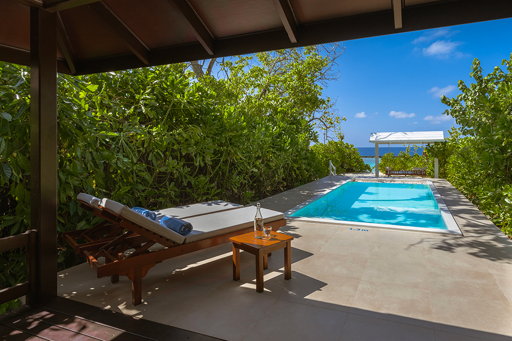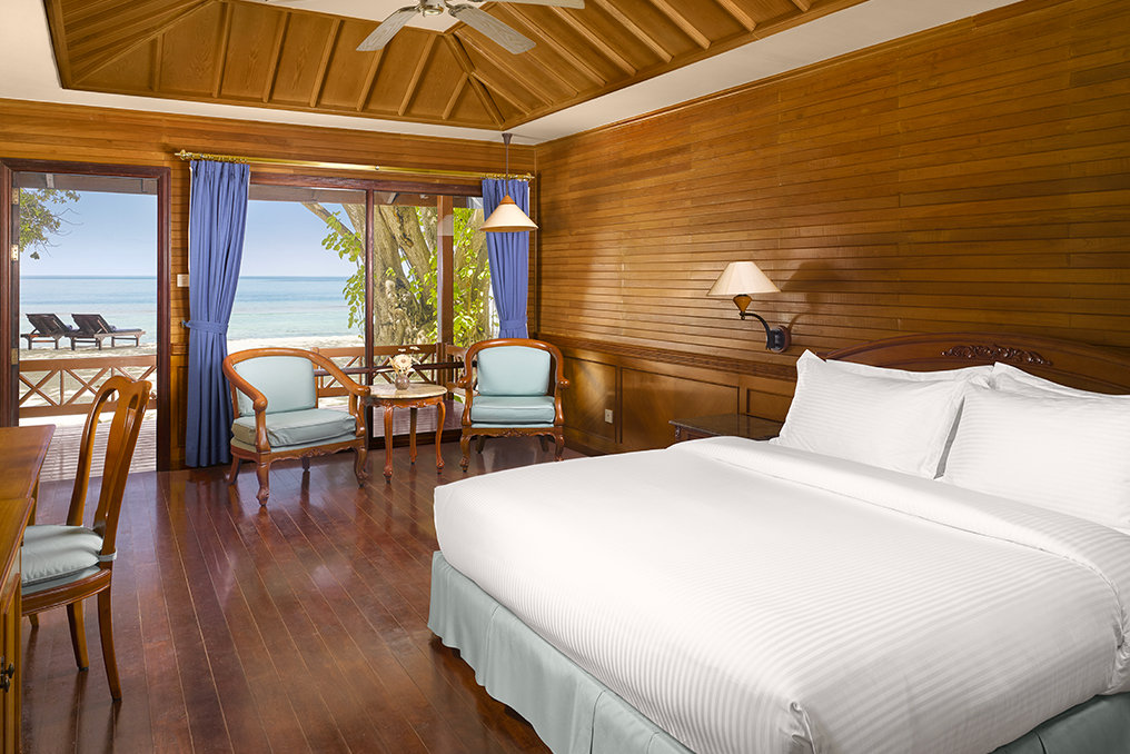 Gli ospiti vengono accolti in 148 eleganti Beach Villa, completamente costruite con il caratteristico legno di Merbau e affacciate direttamente sull’Oceano Indiano ed in 2 Presidential Suite, con due camere da letto, soggiorno e cucina, oltre ad una piscina privata e jacuzzi. Tutte le camere dispongono di una bella veranda dove indugiare guardando il mare, aria condizionata e ventilatore a pale, TV, lettore CD/DVD, telefono, mini-bar, bollitore per tè e caffè, cassetta di sicurezza.