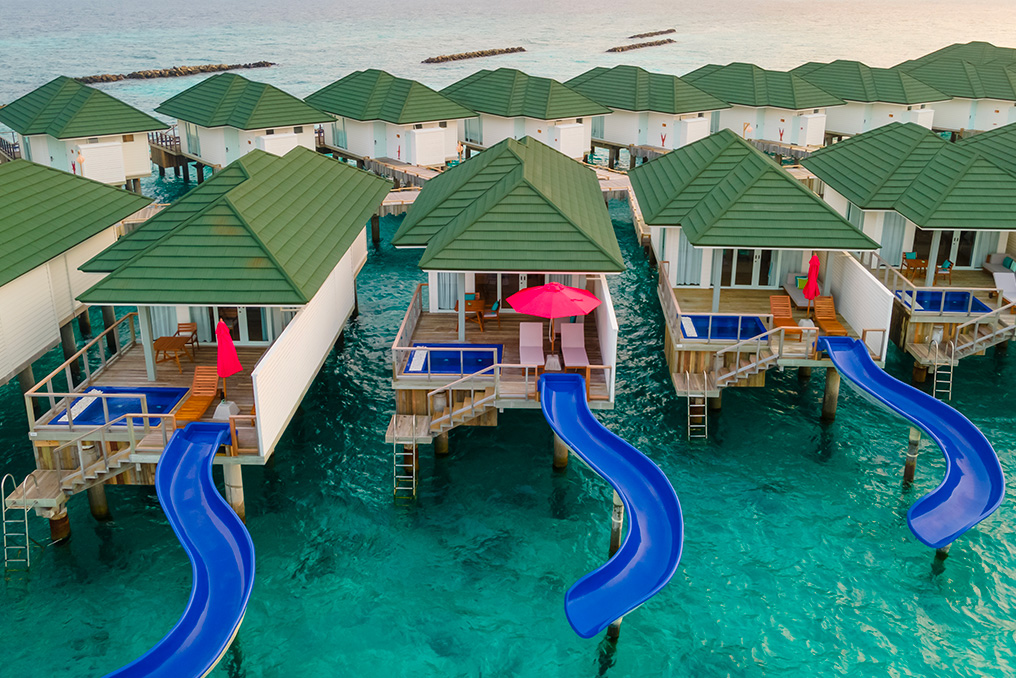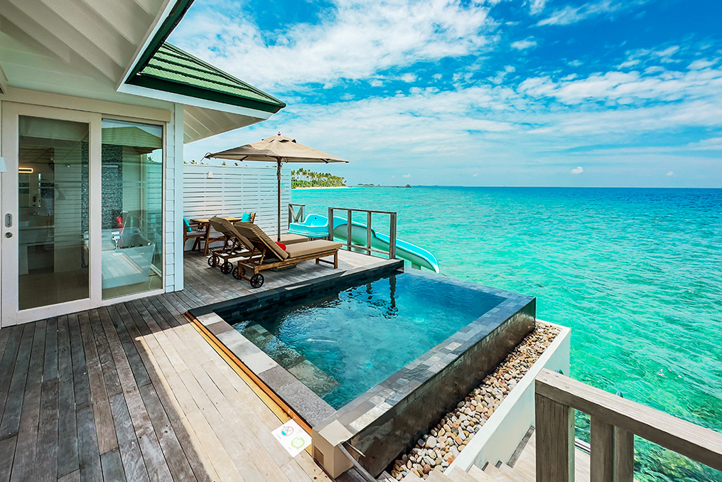 Water villa with pool + slide |