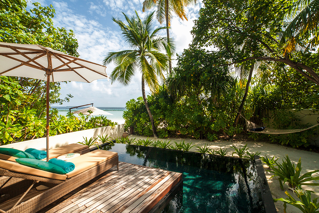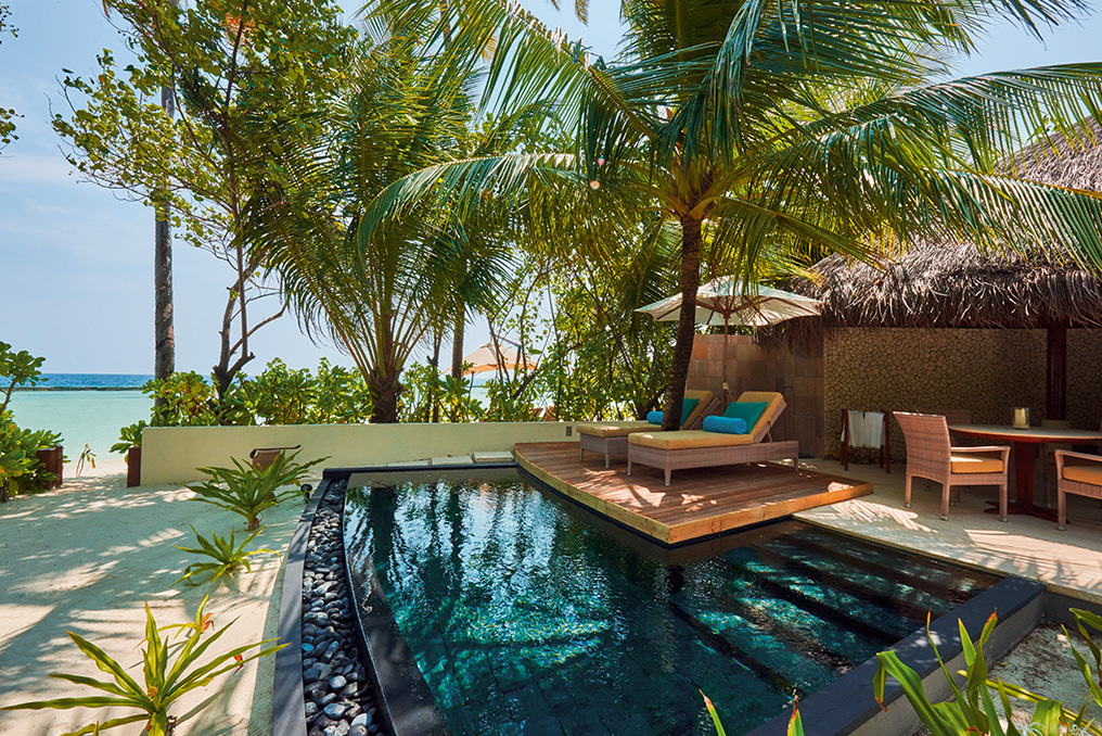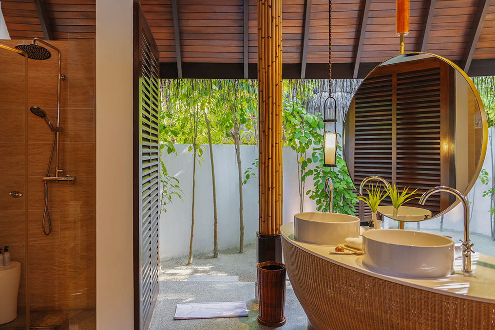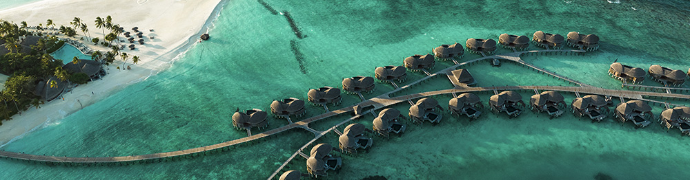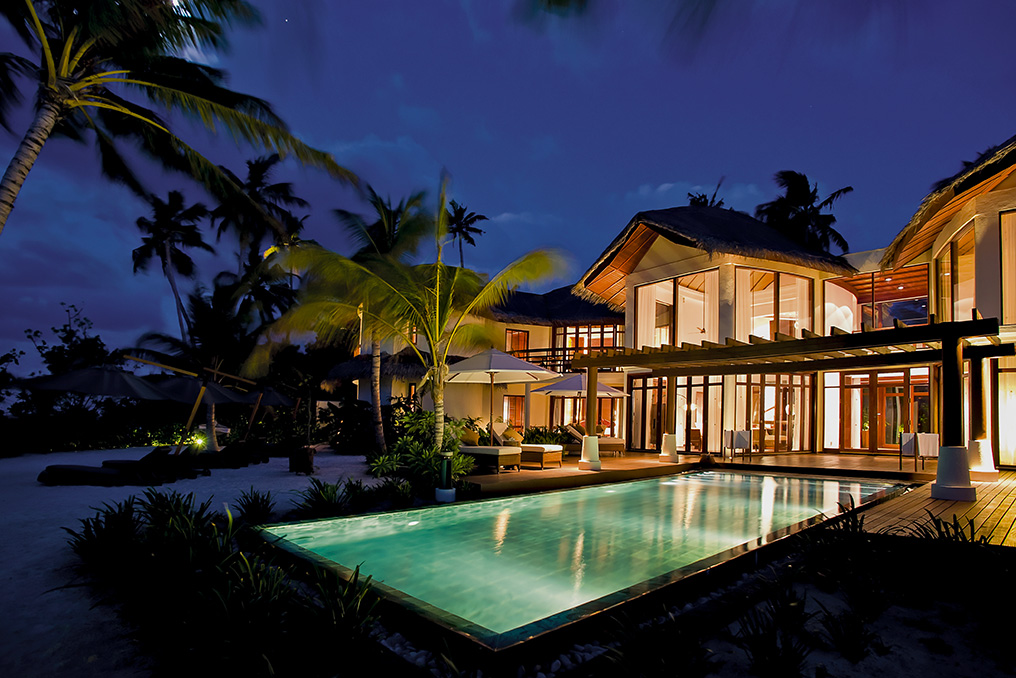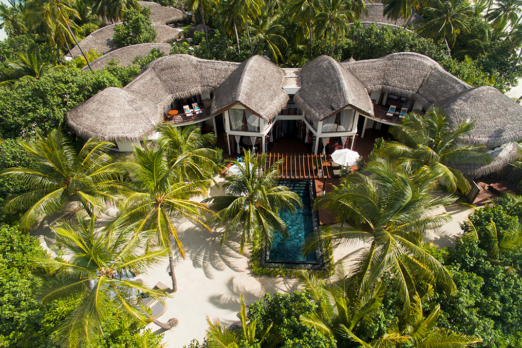 Tutte sono dotate di servizi ad alta tecnologia, accesso internet wi-fi, Mini Mac, TV satellitare, lettore DVD e impianto Hi-Fi con connessione iPod: quanto è necessario per essere collegati con il mondo pur essendone “lontani”. Soltanto 29 ville sono posizionate sulla spiaggia, con vista sulla laguna e giardino e piscina privati sul retro, e hanno dimensioni che vanno dai 350mq fino ai 700 della Villa Presidenziale. Tutte le altre ville di cui 37 Water Villa e 20 Family Water Villa sorgono direttamente sulle turchesi acque della laguna e si sviluppano su un’area di 100mq ciascuna.