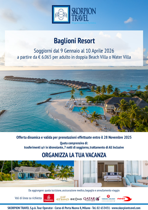 Baglioni Resort Maldives, situato sull’isola privata di Maagau, nell’atollo di Dhaalu, è ad una distanza di soli 40 minuti in idrovolante partendo dall’aeroporto internazionale di Malé.