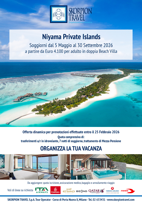 Lussuoso paradiso tropicale composto da due isole: il Niyama Private Islands Maldives vanta un prestigioso centro benessere, il primo nightclub subacqueo al mondo, sistemazioni esclusive, ampie ed eleganti, lunghe spiagge bianche bagnate da acque cristalline ed un servizio maggiordomo.