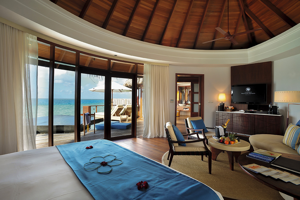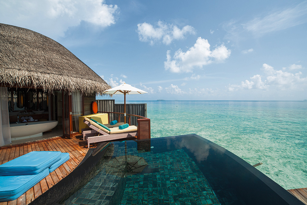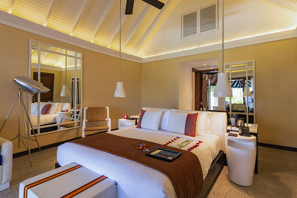 Tutte sono dotate di servizi ad alta tecnologia, accesso internet wi-fi, Mini Mac, TV satellitare, lettore DVD e impianto Hi-Fi con connessione iPod: quanto è necessario per essere collegati con il mondo pur essendone “lontani”. Soltanto 29 ville sono posizionate sulla spiaggia, con vista sulla laguna e giardino e piscina privati sul retro, e hanno dimensioni che vanno dai 350mq fino ai 700 della Villa Presidenziale. Tutte le altre ville di cui 37 Water Villa e 20 Family Water Villa sorgono direttamente sulle turchesi acque della laguna e si sviluppano su un’area di 100mq ciascuna.