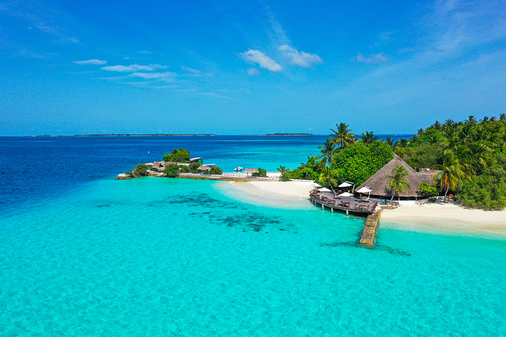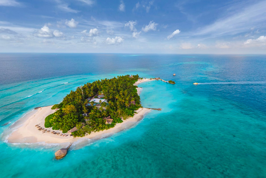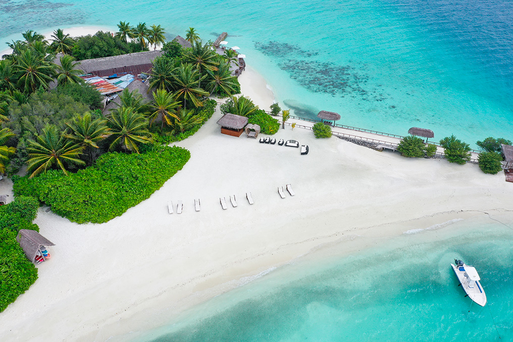 In maldiviano si chiama Makunudhoo, è un’isola piccola, dalla forma tondeggiante, coperta da una folta vegetazione e circondata da bianche spiagge dove passeggiano indisturbati imponenti aironi cenerini e da una bella barriera corallina. 6 acri di totale intimità, con pochi bungalow per pochi ospiti, un’atmosfera tranquilla, raffinata e accogliente, un luogo dove ritrovare il piacere di un silenzio rotto solo dal rumore delle onde e del frusciare delle foglie delle palme mosse da una leggera brezza.