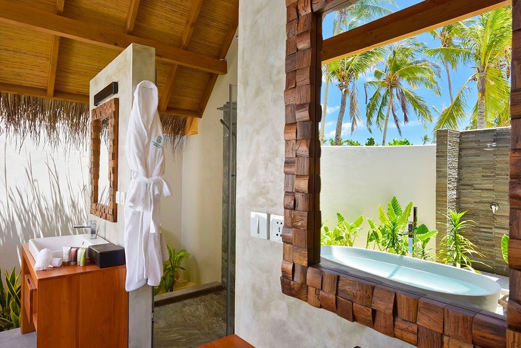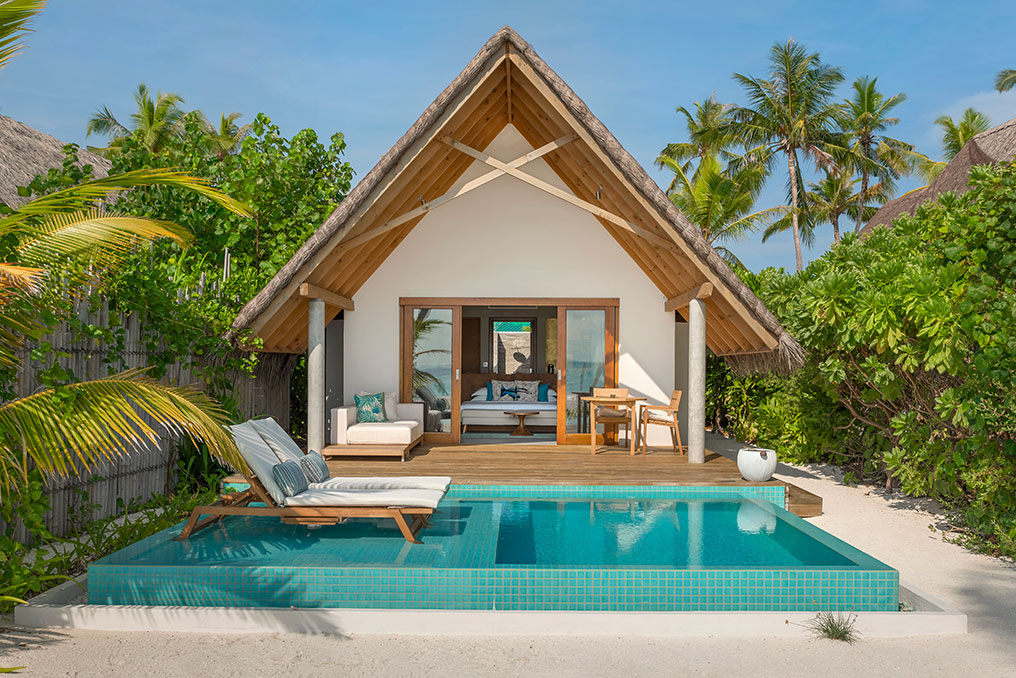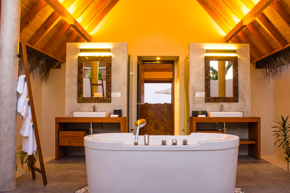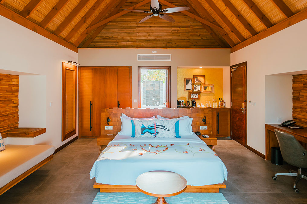 18 Beach Villas situate direttamente sulla spiaggia, che offrono viste mozzafiato sull'oceano e un accesso diretto alla sabbia soffice. Gli interni moderni e ariosi, con tocchi di design tropicale, sono dotati di un'amplia camera da letto, un bagno semi-aperto e terrazza privata. Ideali per chi ama stare a contatto con la natura, sia lato alba che lato tramonto. 20 Beach Pool Villas, versioni più esclusive delle Beach Villas, dotate di una piscina privata all'aperto, perfetta per momenti di relax totale. Offrono ampi spazi, comfort moderni e un'area esterna lussuosa che si fonde con il paesaggio naturale circostante. Per le famiglie, possibilità di 2 Duplex Beach Villas e 1 Premium Duplex Beach Villa, composte da una Beach Villa e una Pool Villa comunicanti. Il resort dispone anche di 19 Water Villas, suddivise nelle categorie Jacuzzi, Pool e Premium Pool, tutte costruite direttamente sulle acque turchesi della laguna, offrendo un'esperienza unica e raffinata. Queste ville sono dotate di una terrazza privata con lettini prendisole e una scaletta per l'accesso diretto alla laguna, perfette per nuotare o fare snorkeling in totale privacy. Gli interni sono eleganti e spaziosi, con ampie finestre che offrono viste panoramiche sull'oceano.