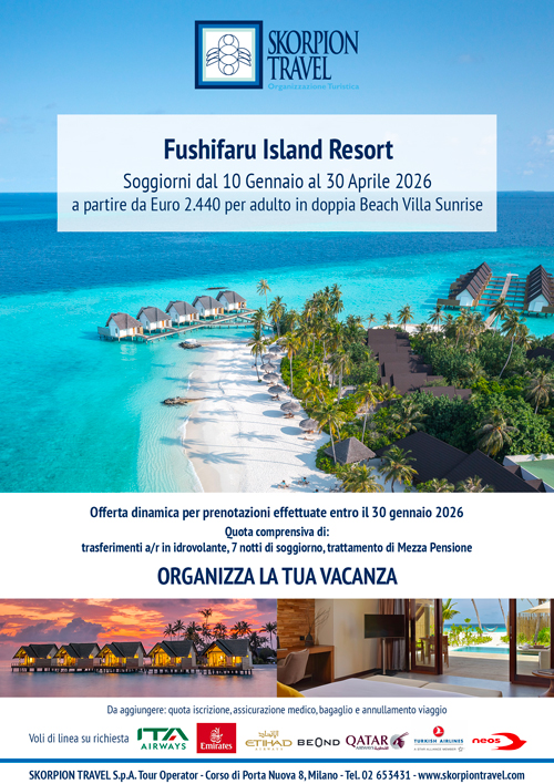 Fushifaru Maldives è un elegante resort situato su una piccola e incantevole isola nell'atollo di Lhaviyani, una delle zone più suggestive delle Maldive. Quest'isola paradisiaca si raggiunge con soli 35 minuti di idrovolante. E’ circondata da una laguna turchese, rendendola la destinazione perfetta per chi cerca relax, avventura e una connessione intima con la natura. L'isola si distingue per la sua atmosfera tranquilla, spiagge di sabbia bianca incontaminata e una lussureggiante vegetazione tropicale che crea un vero e proprio rifugio esotico.
