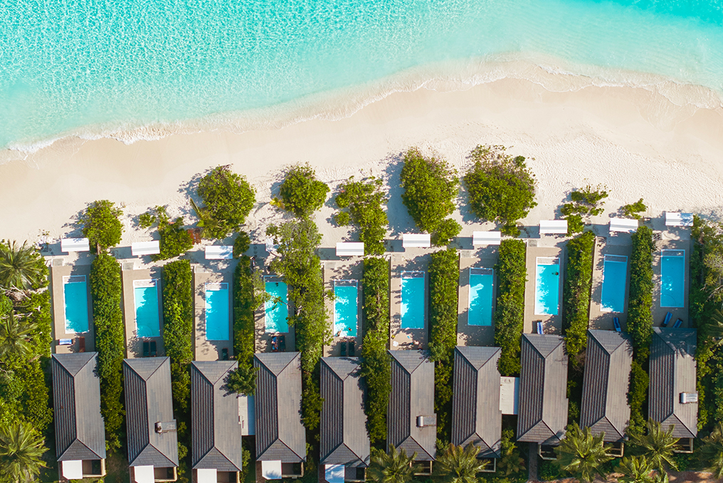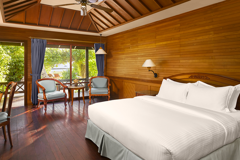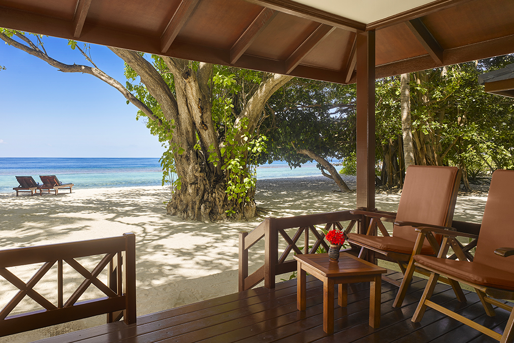 Gli ospiti vengono accolti in 148 eleganti Beach Villa, completamente costruite con il caratteristico legno di Merbau e affacciate direttamente sull’Oceano Indiano ed in 2 Presidential Suite, con due camere da letto, soggiorno e cucina, oltre ad una piscina privata e jacuzzi. Tutte le camere dispongono di una bella veranda dove indugiare guardando il mare, aria condizionata e ventilatore a pale, TV, lettore CD/DVD, telefono, mini-bar, bollitore per tè e caffè, cassetta di sicurezza.