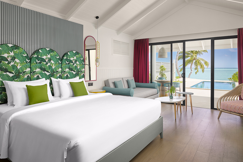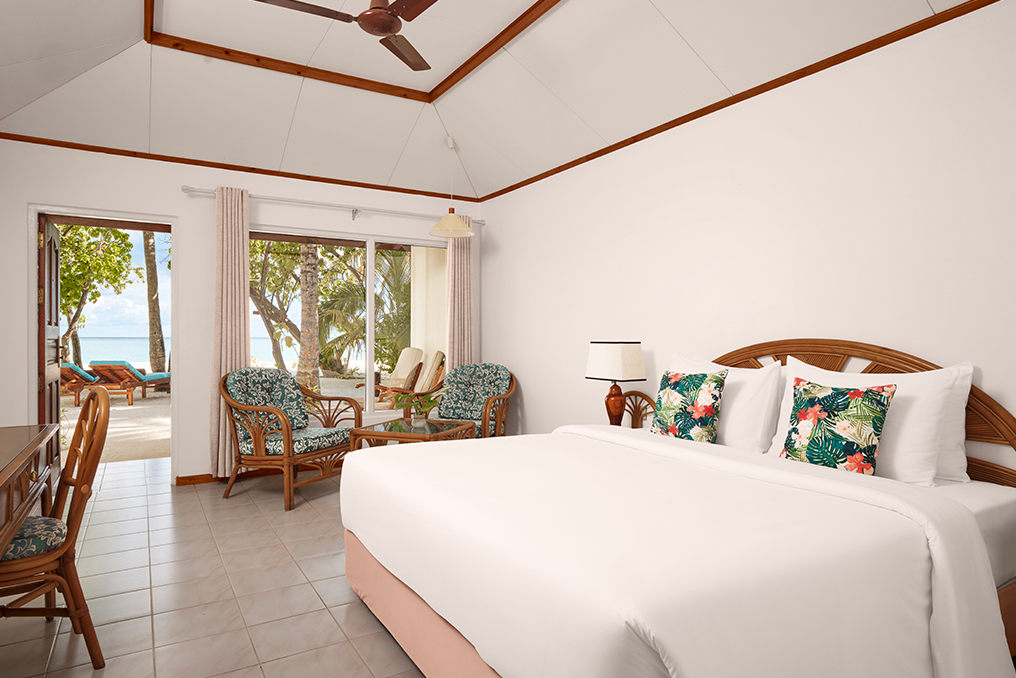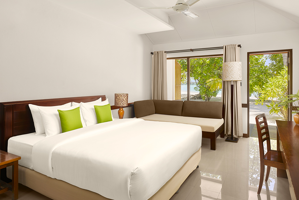 Diverse le sistemazioni, tutte dotate di ogni comfort. 106 Standard Beach Bungalow (26 mq), 218 Superior Beach Bungalow (38 mq) e 30 Sunset Villas (26 mq) offrono una splendida vista sui colori dell’Oceano Indiano; 36 Sun Villas, bungalow di circa 30 mq situati tra la vegetazione a circa 50-150 metri dalla spiaggia; 64 Water Bungalows (39 mq) danno la possibilità di immergersi direttamente dalla terrazza privata nelle tranquille e calde acque della laguna. E chi volesse concedersi al lusso, lo troverà in una delle 4 esclusive Presidential Suites, spaziose water villa, con due camere da letto, una terrazza privata fronte mare e vasca idromassaggio.